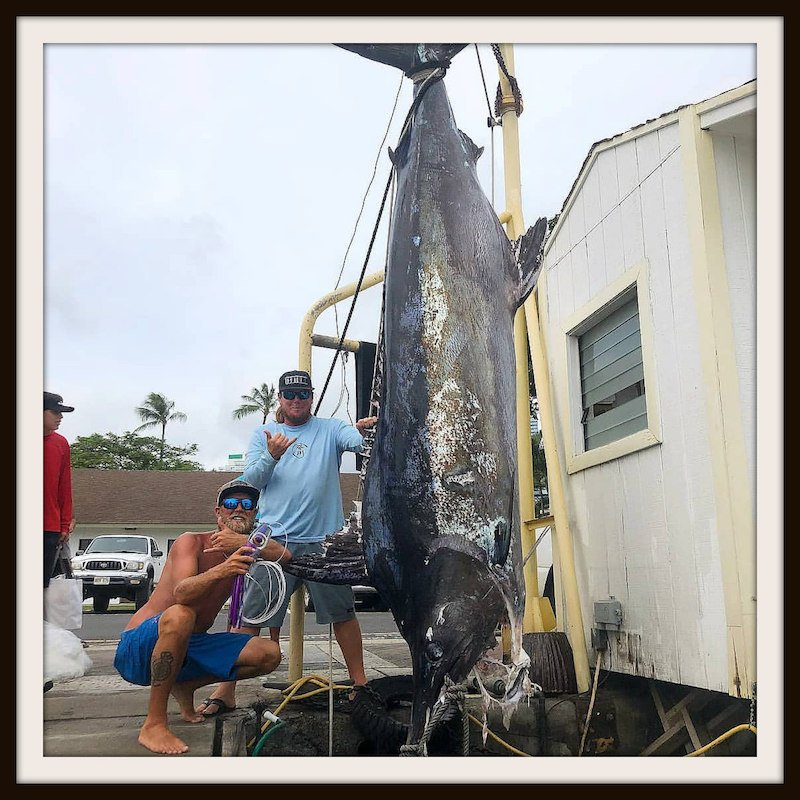 Oahu, Hawaii – Capt. Chris Rubin and Ricky Fairbanks on Ruckus weighed a 1,005 lbs. Blue Marlin. The fish ate a Moyes Sumo off their short corner. The fish died in the fight, so they had to plane her up to get her in the boat.