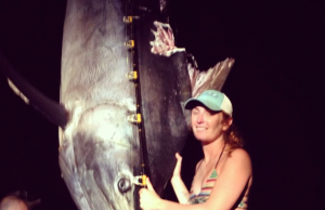 Cairns, Aus (Great Barrier Reef) Capt. Ross Finlayson on Top Shot weighed a 1,111 lbs. Black Marlin for Stephanie Choate. The fish was caught