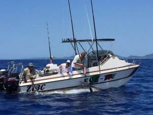South Africa – 1st Grander of the Year Cape Vidal, South Africa – Skipper Roberto Fierro on Eye-Tie put Angler Bully de Ricqueberg on an estimated 1,245 lbs. Blue Marlin. The fish More